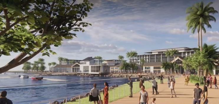 An artistic rendering of Tucker Sadler’s vision for the Marina and Waterfront.